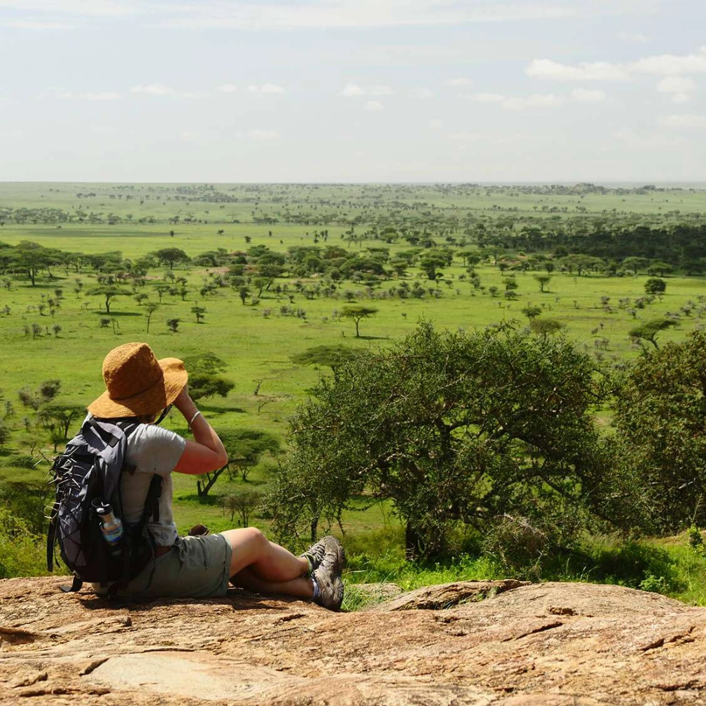 Check into a camp in the Serengeti. While the Serengeti is primarily a game drive destination, some exclusive camps have permission for short walking safaris.