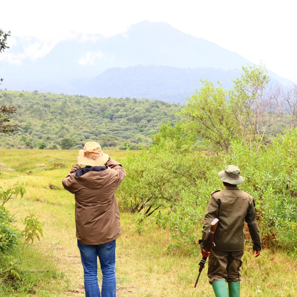 The park offers diverse habitats, from montane forests to grassy plains. You will embark on a guided walking safari with an armed ranger.