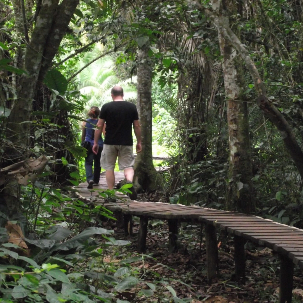 Primate Tracking Paradise comes alive through guided chimpanzee tracking, nature walks, and immersive forest experiences, offering visitors unforgettable encounters with wildlife in an authentic rainforest setting.